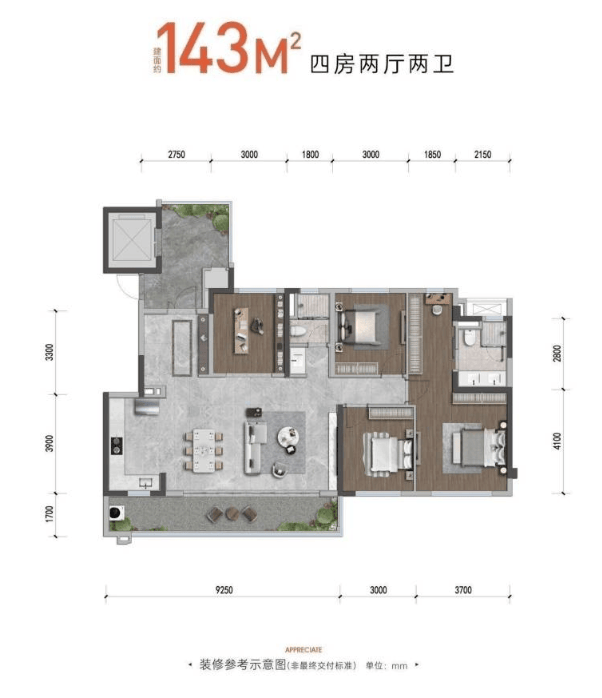 建面约129㎡/143㎡ 四居室