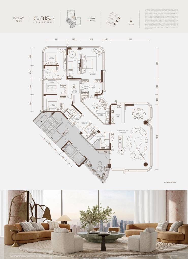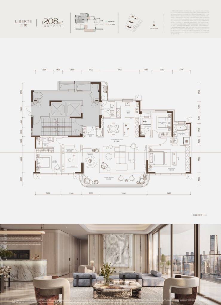 以“纵向生长的空中树”为先锋形态内核,以超感空中树、全景舱等设计,打造208㎡-318㎡的多元户型,创新引领下一个人居时代。