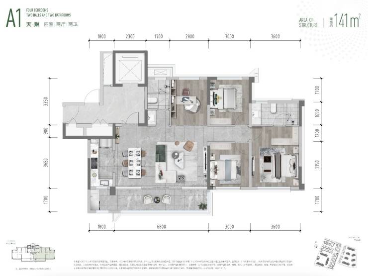 面积:141㎡,底跃343㎡花园60㎡左右(住宅)