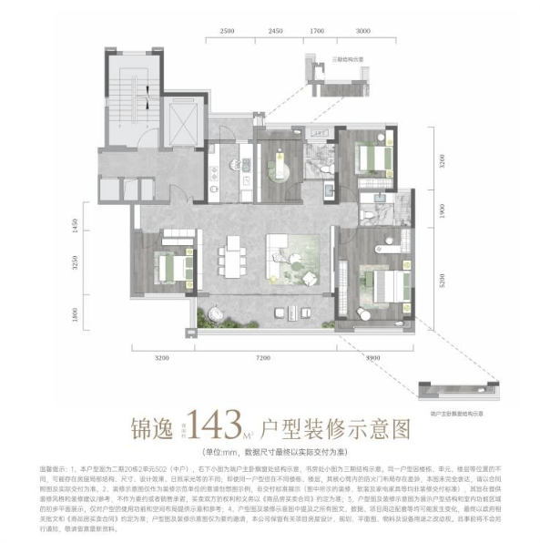 此户型定位为终极改善,旨在为多代同堂的大家庭提供更为奢阔、尊崇的居住体验。在143㎡户型优势的基础上,进一步拓展了各个功能空间的尺度,主卧可升级为更为豪华的套房。它提供了更强的家庭活动承载能力和更私密的个人空间,适合追求一步到位、注重生活仪式感与品质的世家大族。