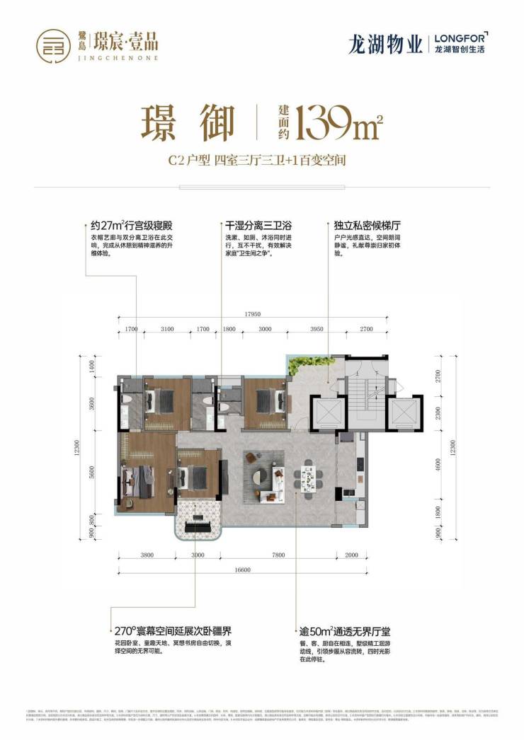约139㎡四房三厅三卫+1百变空间--实得平层约160㎡