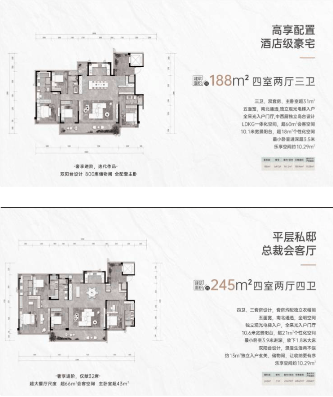 04 主力户型解析 全系143-245㎡精装大平层,以四至五房全能空间,满足多代同堂与品质改善的全维想象