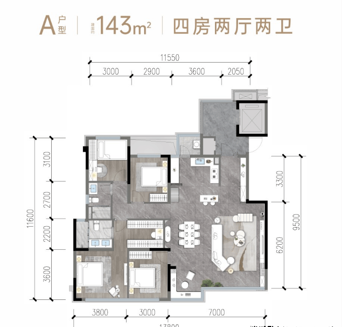 四房高阶配置:128㎡比肩143㎡,打破常规尺度,满足高定生活需求