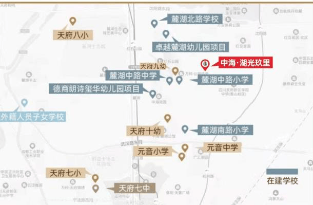 优质学府:天府七中、四川天府新区第七小学、元音中小学、天府新区麓湖幼儿园、天府新区麓湖小学;