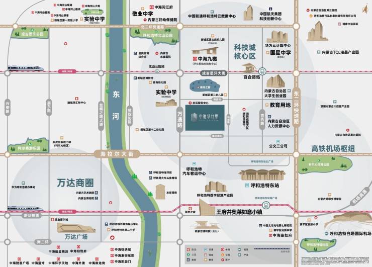 中海·学仕里以同频呼市脉搏的远见,落子新城区二环内科技城核芯板块,占位城市科创之芯与高铁、机场双枢纽交汇带。区域集聚华为云计算中心、百度智能云、蚂蚁数字、航天六院总部基地等科技企业/机构300余家,正崛起为城市引擎,未来前景无限。