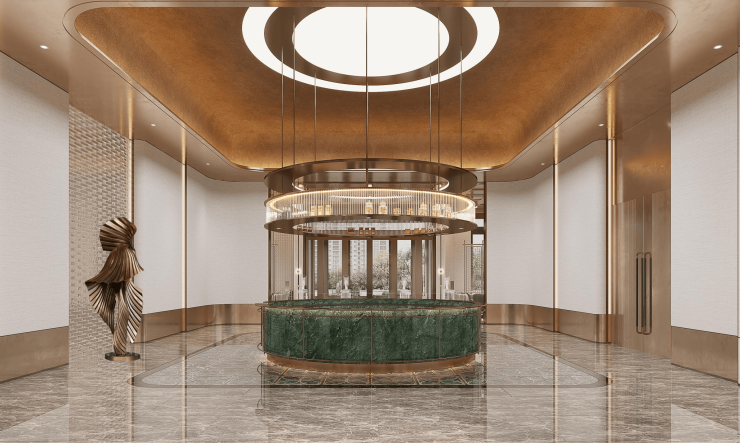 ▲星级恢弘的华尔道夫酒店式小区入户、双精装单元入户,精奢品质感不彰自显