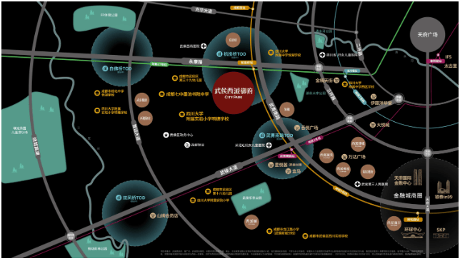 项目雄踞武侯新城核心改善居住区,此处不仅是城市南拓西进的关键节点,更以密集的TOD规划与新兴产业布局,构建出面向未来的繁华蓝图。选择西派御府,即是占位城市资源汇聚的确定性方向,享受板块能级持续跃升所带来的多维价值。