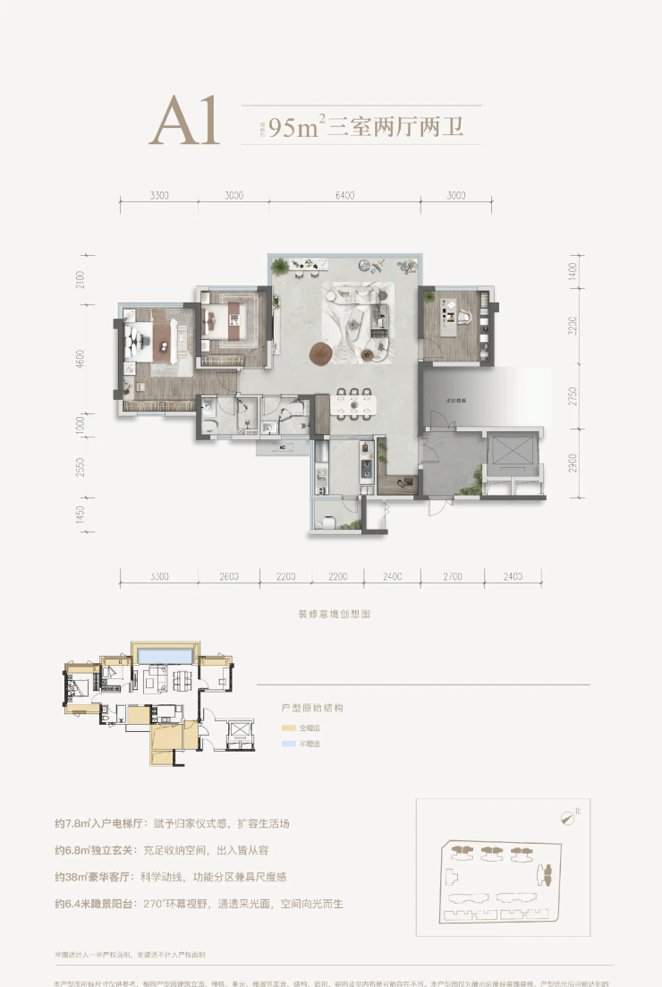 空间格局:95-136㎡三至四房臻品户型