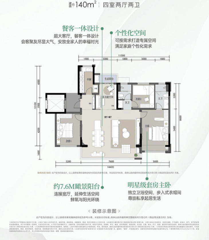 项目焕新加推的臻品洋房,主打建面约140㎡的奢阔四居户型。在6层纯板式、户户南北通透的优越基础上,此户型拥有宽敞的家庭社交厅、明厨明卫以及多间舒适卧室,充分尊重每位家庭成员的独立空间与隐私。阔绰的景观阳台或飘窗,将室外潺潺河景与公园绿意延引入室,极大提升了居住的愉悦感与价值感。
