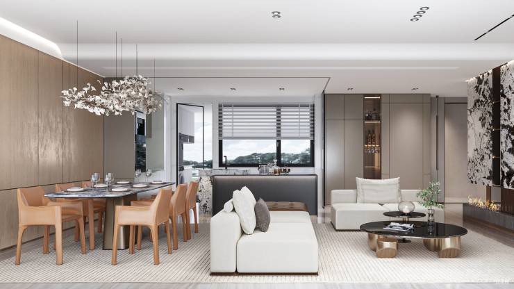 家族式全景通透餐客厅,迎邀光感入室