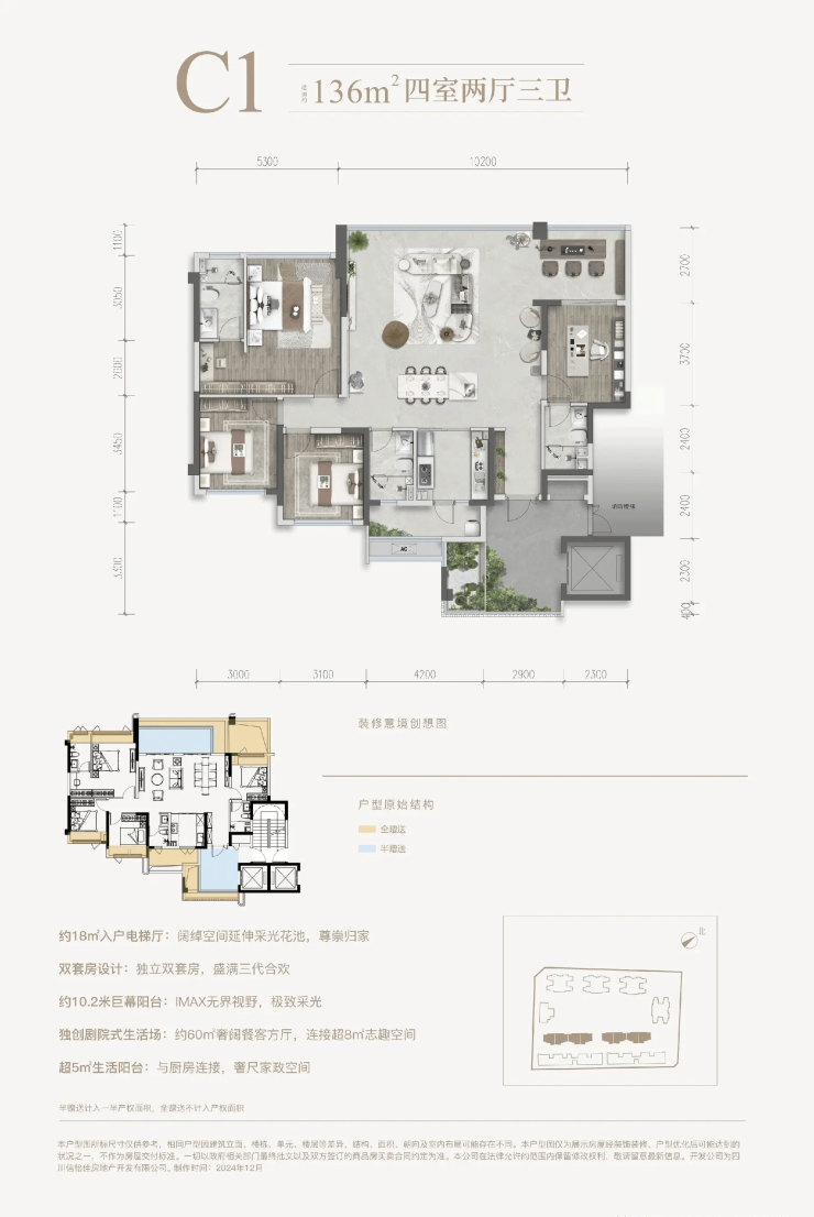 空间格局:95-136㎡三至四房臻品户型