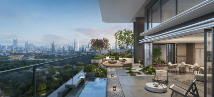 其一,空中庭院成标配,私属空间扩容。这是四代宅最鲜明的标志。新规鼓励通过错层、挑高设计为每户配置私属户外庭院,且符合要求的空中花园面积可不计入容积率。例如长沙某项目170㎡户型配备约26㎡全赠送空中庭院,240㎡户型庭院面积达45㎡,挑高6.8米,可种植乔木、打造家庭休闲区,实际得房率超95%。这种设计让高层住户也能拥有类似别墅的庭院体验,实现“空中有院”的居住梦想。