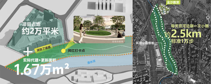 近1:1 代建临河网红公园 亲水价值拉满项目占地约2万㎡,以近 1:1 比例代建约1.67万㎡临河公园。