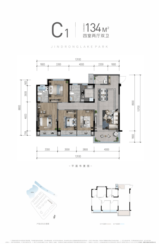 此户型定位为项目的深度改善产品。更大的面积为各功能房间提供了更为宽松的尺度,能够轻松设置独立书房、儿童活动区或更为宽敞的主人套房。结合项目超大的楼间距与部分房源拥有的一线湖景视野,能承载更高品质的家庭生活与社交场景,是追求一步到位公园栖居的理想选择。