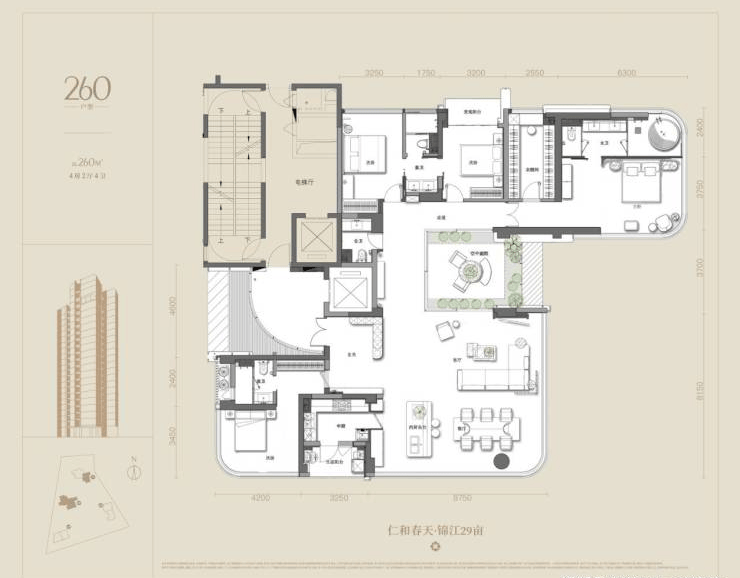 仁和春天 29 号踞成都锦江中环,近地铁 7 号线,三环内稀缺地块。蝴蝶栋型 360° 采光,94% 得房率,嘉祥邻校双公园,精装低密奢居。