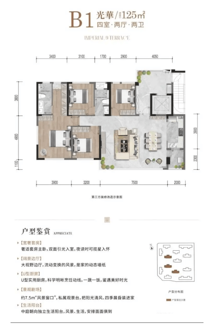 格局亮点:平层户型提供更为奢阔的居住体验;而跃层产品(包含平顶跃)通过立体空间分割,实现了动静的绝对分离,带来别墅般的居住感受,并可通过露台、花园等设计增强与自然的互动。