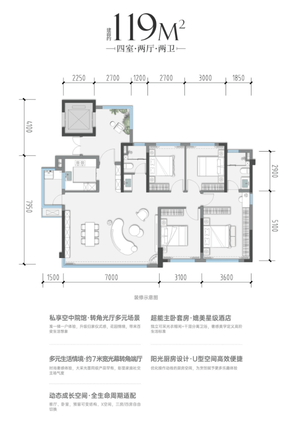 金茂晓棠主打建面约110-139㎡的品质住宅,户型设计秉承金茂一贯的精工标准,聚焦家庭生活场景,以科学的动静分区、良好的采光通风和人性化细节,承载现代家庭对舒适生活的全部想象。