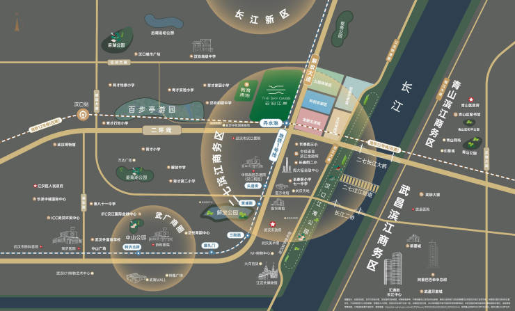 位于二七滨江商务区6-7期发展带,享解放大道交通主轴及二环内的核心城市配套资源,共筑汉口超级醇熟生活圈