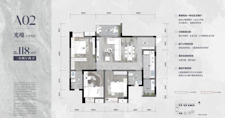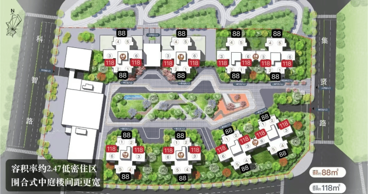 主力户型:88㎡(2+2+1)、118㎡(3+2+2)