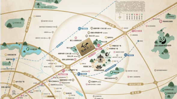 文娱地标环抱:项目周边汇聚昭觉寺、天府国际动漫城、成都动物园、成都大熊猫繁育研究基地等独特的城市文化娱乐地标,为家庭生活提供了丰富多元的休闲选择,让日常生活充满趣味。