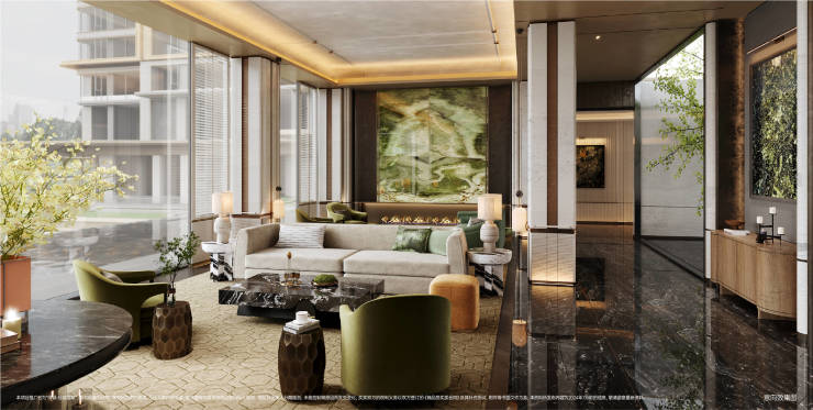 设计师以东方摩登韵味打造双重下沉庭院,以高规格规划约4000方会所,集月华阁、健身中心、私宴及共享餐厅、行政酒廊、瑜伽馆、壁球馆、室内全龄恒温泳池为一体,以及高层全架空主题空间,完善全龄乐动的生活体系。