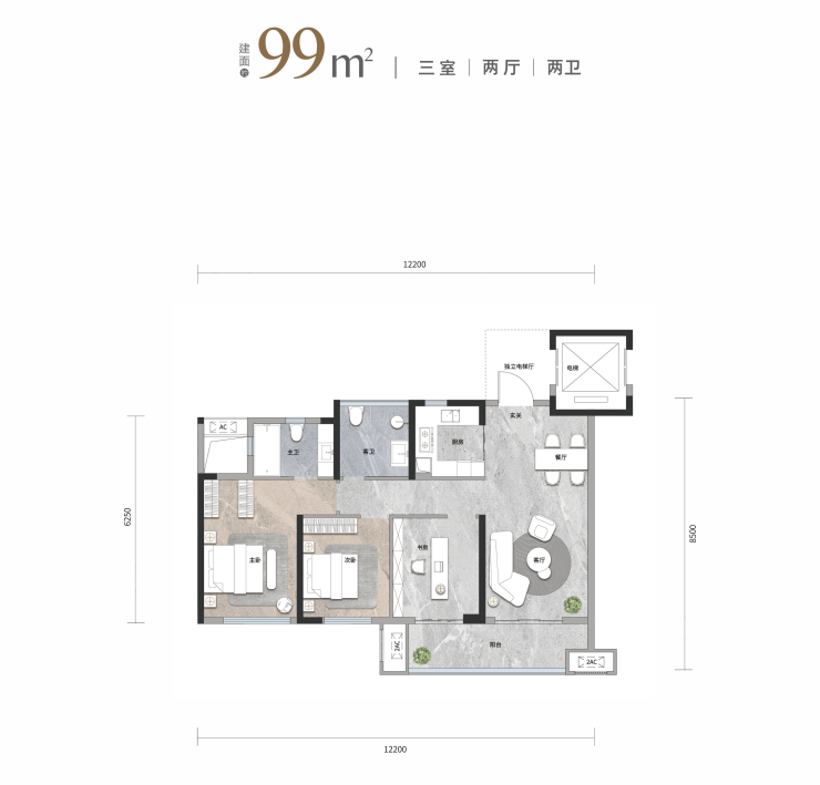 全维迭代产品 超配准四代宅建面约87-126㎡新一代超配轻改善之作,私梯入户,升级超大面宽,南北双阳台配置。超90%得房率,最大化空间利用。