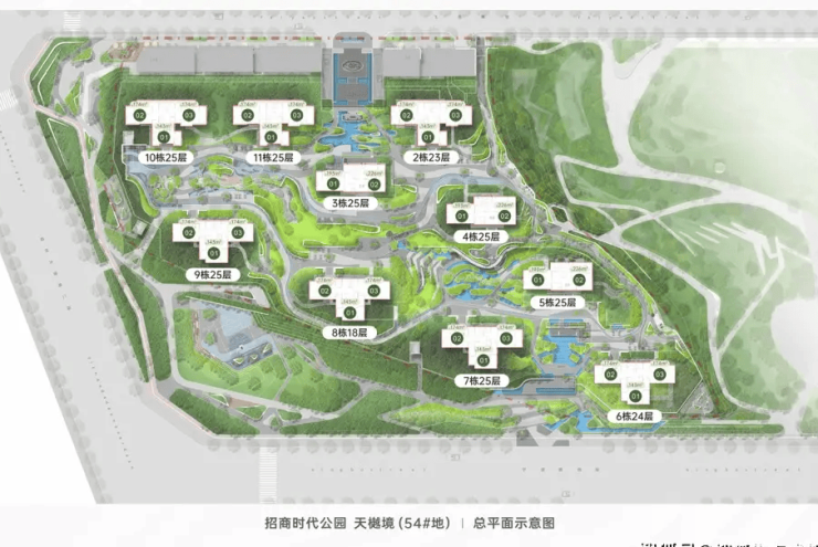 在招商时代公园,漫步交织的缎带公园。由全球顶尖景观设计单位SWA操刀,整体规划达约2160米、平均宽度达约95米的人字绿廊,为“遥望西岭雪山和龙泉山脉的自然风光”而设计,连接一园两河,发挥海绵城市、碳汇森林、生态风廊三大作用,延展开来更细密的缎带绿道,则将城市功能与大型公园相连,让“人均绿地可达率”降低至直线距离约300米内。