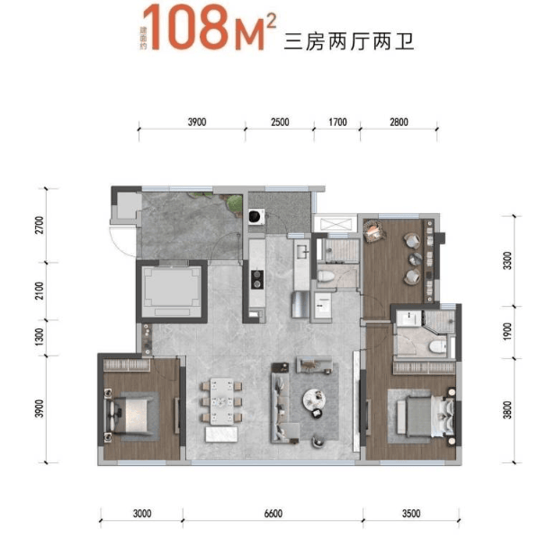 建面约108㎡ 三居室