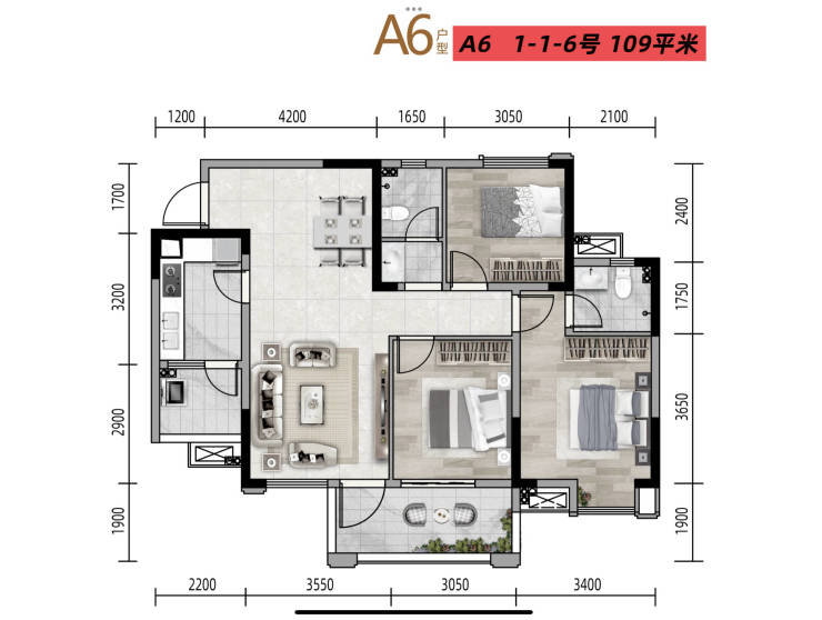 建筑面积约109㎡三室两厅两卫