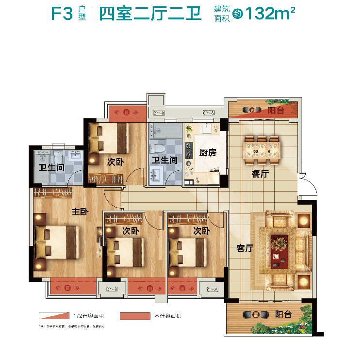 洋房(7100元/㎡):约131㎡(四房);