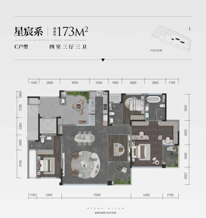 墅居体验:户户拥有至少两个以上的独立花园,卧室多与花园露台直接连通。部分户型户外空间总面积可达近百平方米,并预留独立电梯井,实现了空间独立性、功能完整性与自然交互性的全面超越。