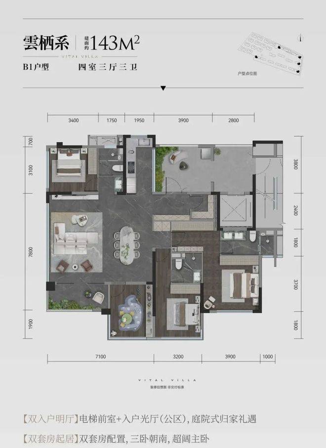 格局亮点:作为板块内稀缺的新规低密平层,产品拥有优异的采光与视野。户型设计强调功能性空间与家庭社交厅的营造,满足品质家庭的改善升级需求。