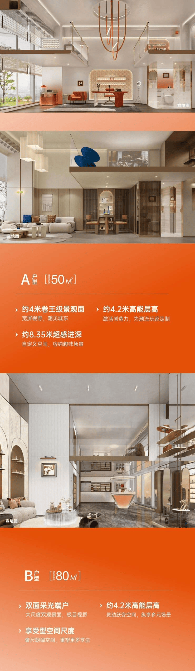 主力户型:4.2米跃变公馆 建面约50-60-80㎡