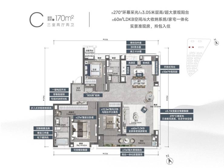 3号楼 面积170C 37层 2梯2户 公摊25.8%