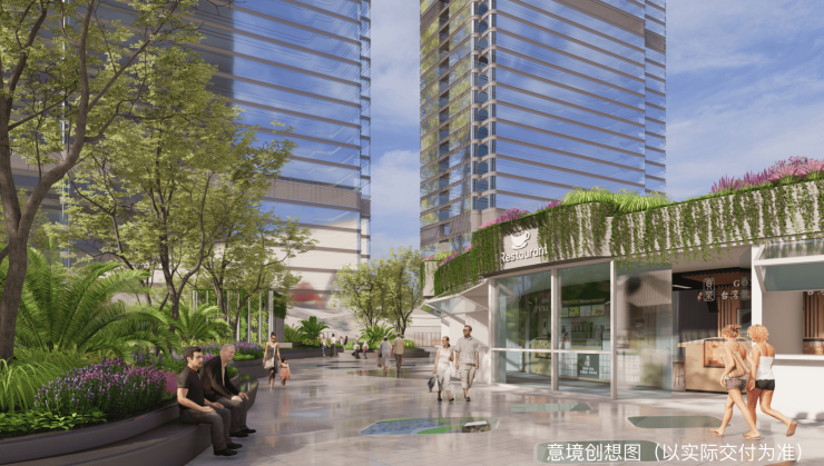 科技范场景,艺术化氛围,沉浸式体验;约1.2万方空中花园、生鲜超市,吃喝玩乐购一站式旗舰商业。
