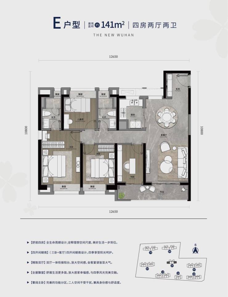 建面约108m²-141㎡改善住品:以更舒展的生活空间,满足首次改善、二次改善客户的居住需求。