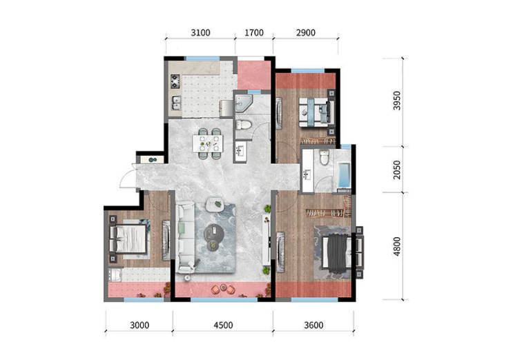 A户型:95㎡|三室两厅两卫