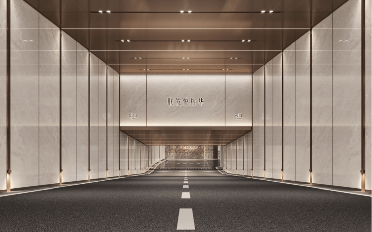 地库追光坡道,公区大范围铝板运用会呼吸的地库,退让车位「艺术绿植」造景负一层大堂同首层大堂交付标准