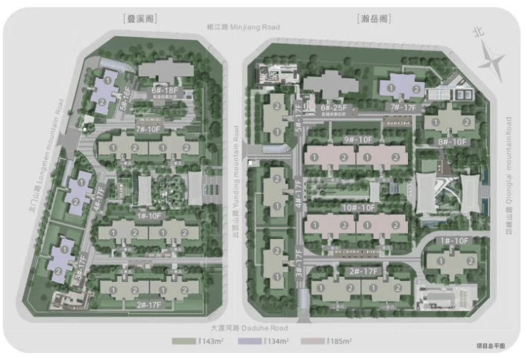 项目整体规划为纯粹的改善住区,瀚岳阁部分共324户,产品均为1梯2户或2梯2户的板式洋房,确保了居住的私密性与舒适度。社区以约84%的高得房率和南北通透的经典格局,最大化居住空间价值。