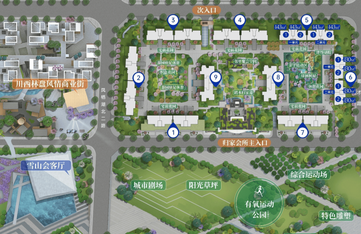项目与两大城市公园比邻而居,200亩凤栖湖中央公园与120亩运动主题公园形成天然氧吧,为居者提供健康生活保障。