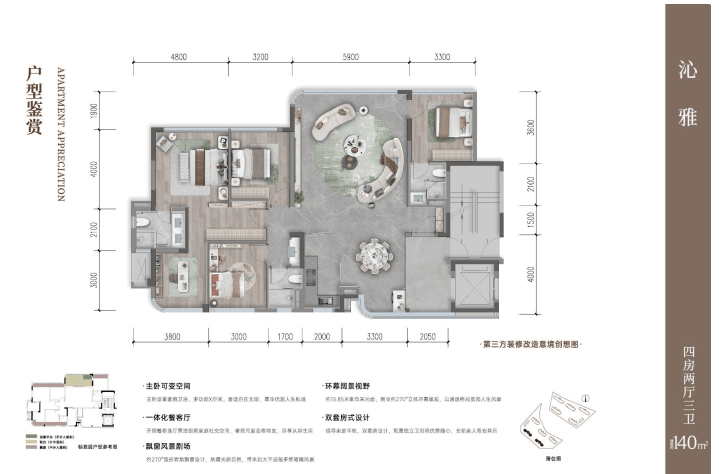 项目提供建面约140㎡、160㎡、175㎡的全系精装改善户型,并以极高的得房率为共同特征。户型设计精准切入家庭全生命周期的成长需求,在功能布局、空间尺度与场景营造上,均体现出面向高端改善客群的深度考量。