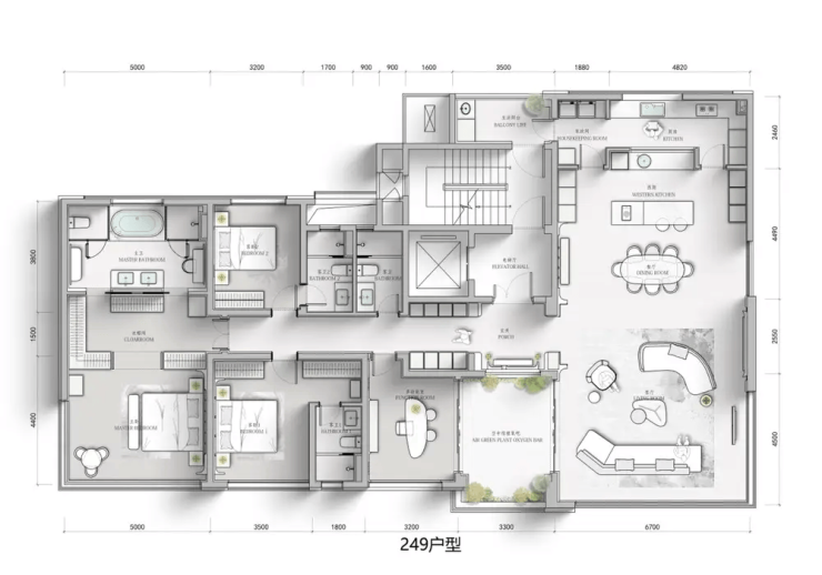 空间尺度:143-173㎡户型层高3米,198㎡提升至3.1米,249㎡达3.15米,叠拼产品更享3.4米奢阔层高