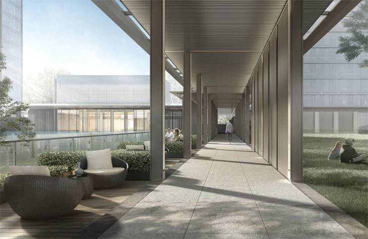 未来高端住区专属设计由灰色铝板构建出“风雨连廊”系统无论阴晴雨雪、四季变化这里都将成为园区中“无风雨”的观景走廊