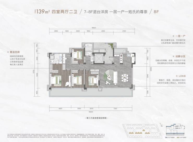 七楼139平实得面积290㎡,屋顶花园150㎡;