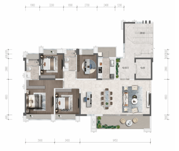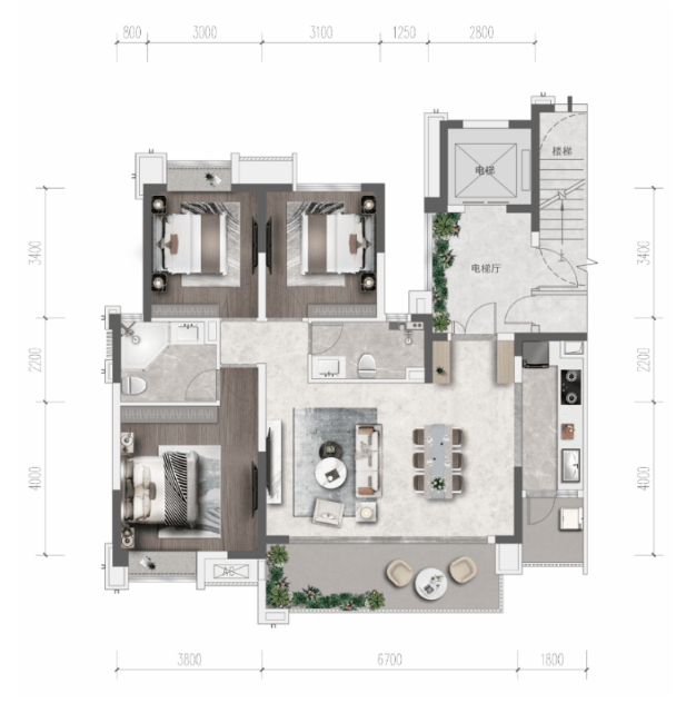 项目主力产品为建面约128-183㎡的2梯2户板式平层,全线产品均采用市场备受追捧的横厅设计,以朗阔的尺度、灵活的动线与多功能空间,满足不同家庭结构的改善需求。