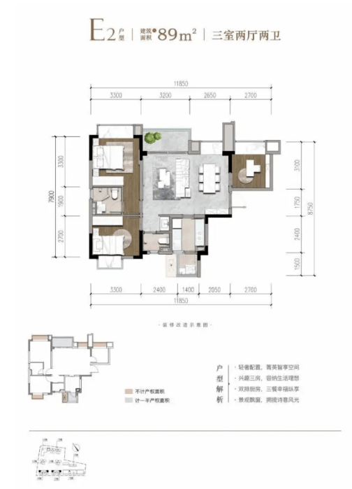 建面约88-89㎡ 三房两卫 (刚需优选)