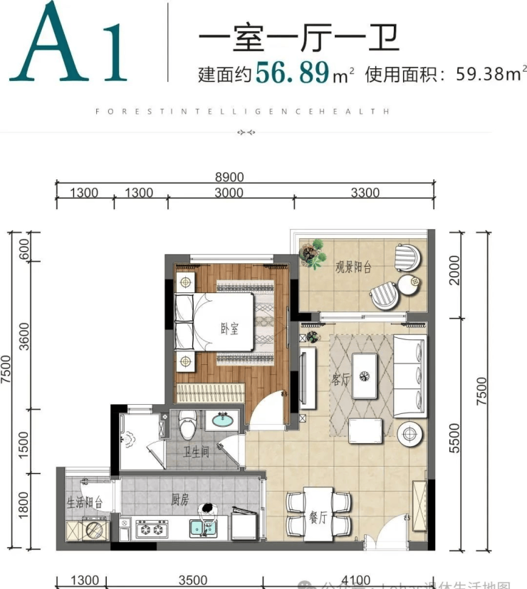 主力户型:48㎡/58㎡一居室、75㎡两居室(精装带地暖交付)。