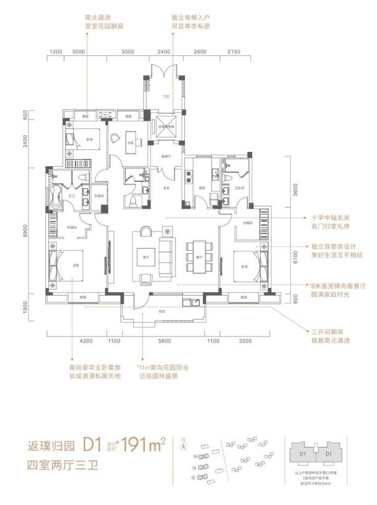 合计6层,2梯2户面积:191-196平一楼赠送60-90平花园!!单价:1.2W