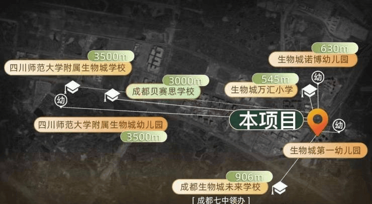 菁英教育集群:全龄段优质教育环伺,涵盖生物城第一幼儿园、万汇小学、贝赛思国际学校,尤其值得一提的是已签约的成都七中生物城未来学校,奠定了板块的菁英教育基石。