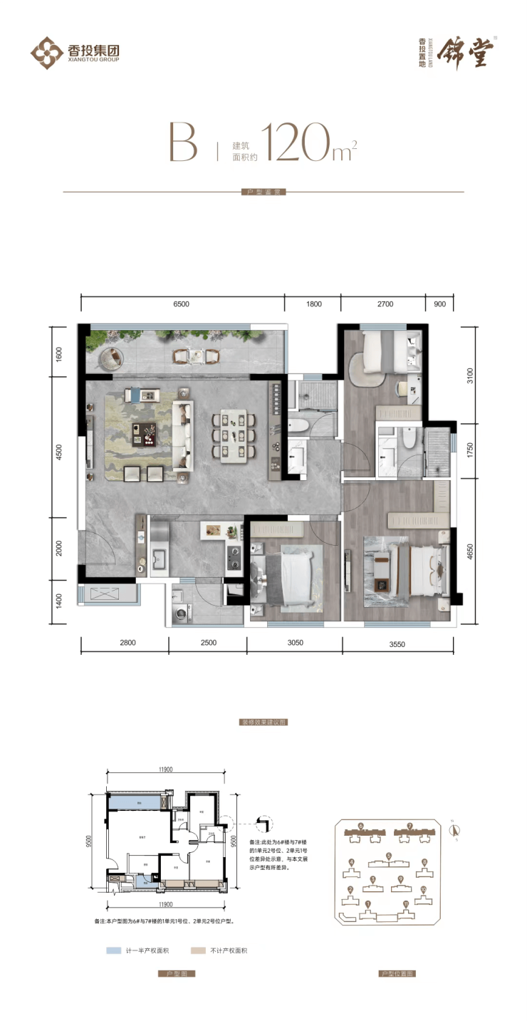 瞰景高层(6#、7#清水交付):建面约97-120㎡(97㎡享13㎡赠送,120㎡享14㎡赠送)